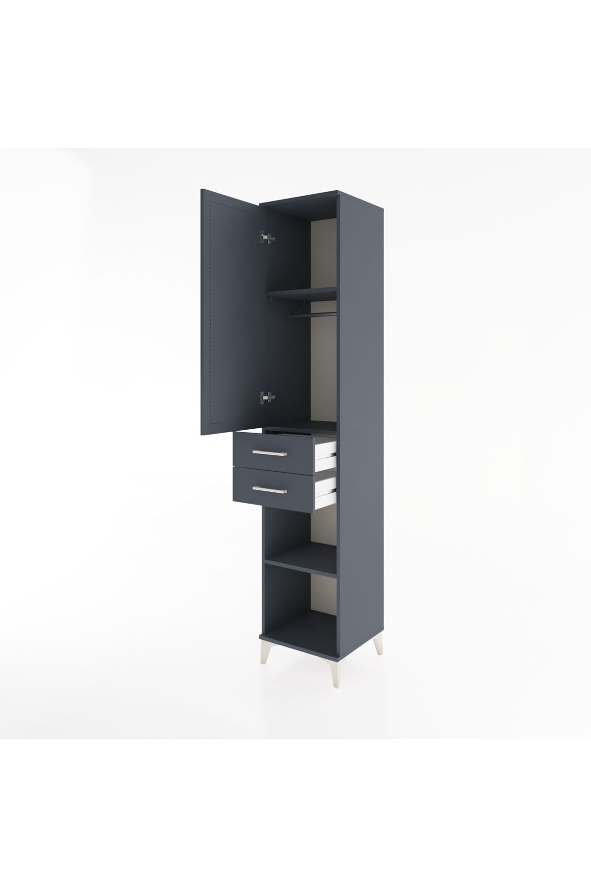 Hyperion Dolap 3 Raflı 2 Çekmeceli Tek Askılı 44x44x221 Antrasit-Antrasit