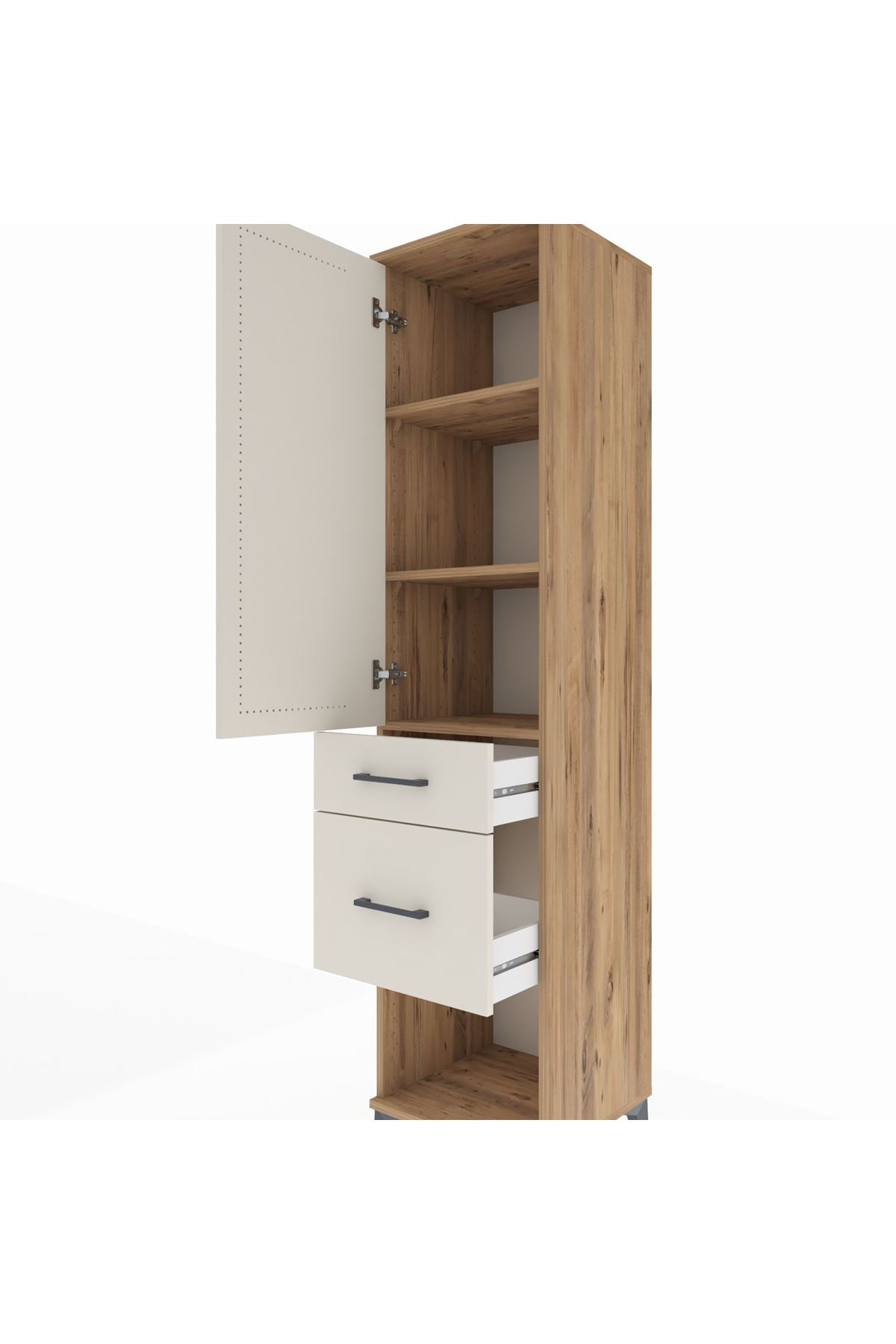 Hyperion Dolap 3 Raflı 2 Çekmeceli Tek Kapaklı 44x44x195 Çam-Aytaşı