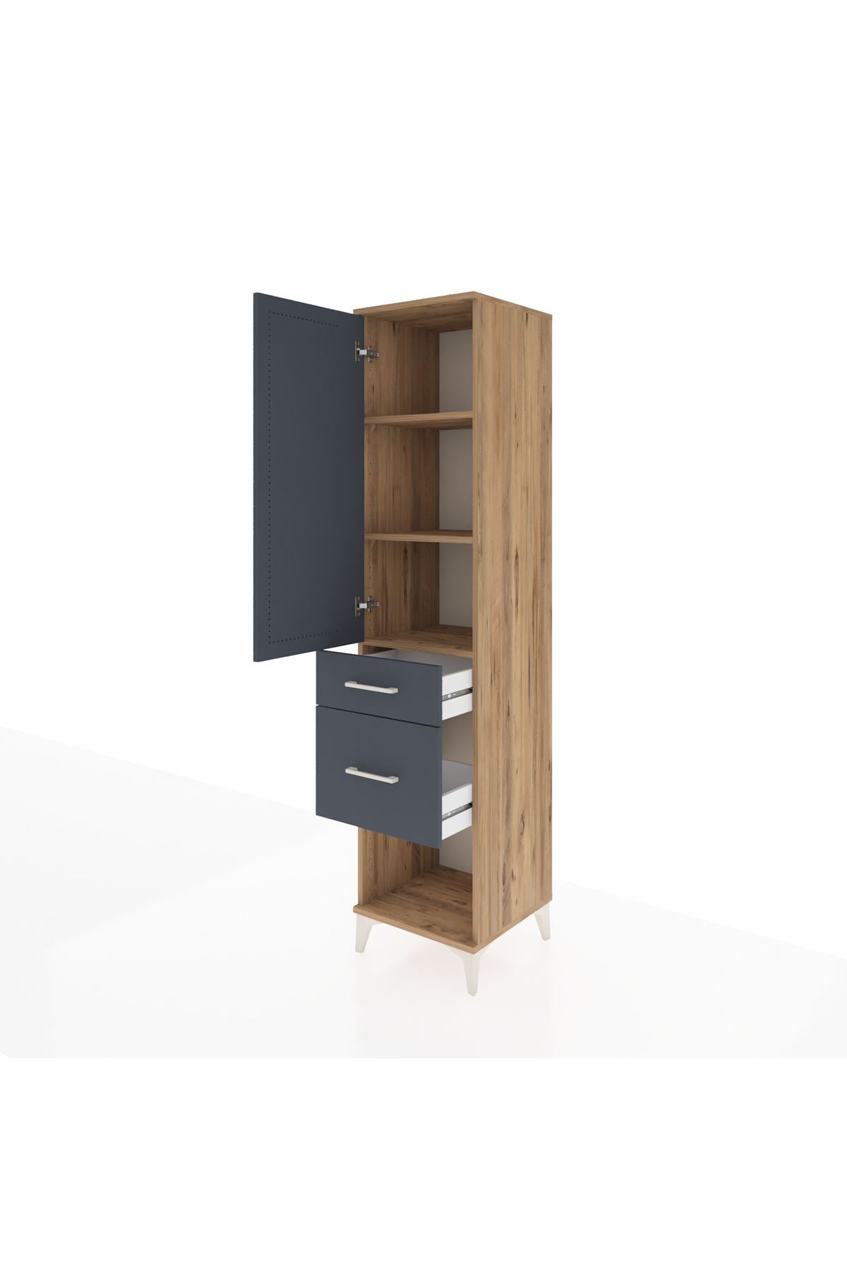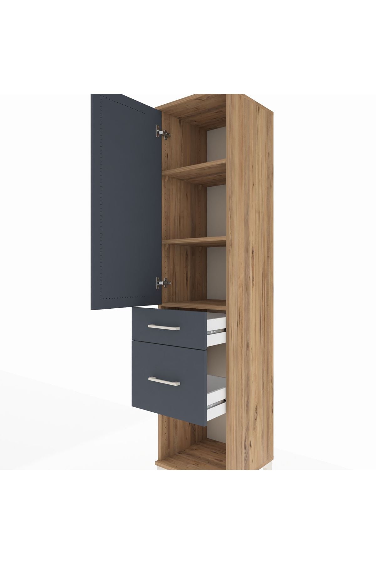 Hyperion Dolap 3 Raflı 2 Çekmeceli Tek Kapaklı 44x44x195 Çam-Antrasit