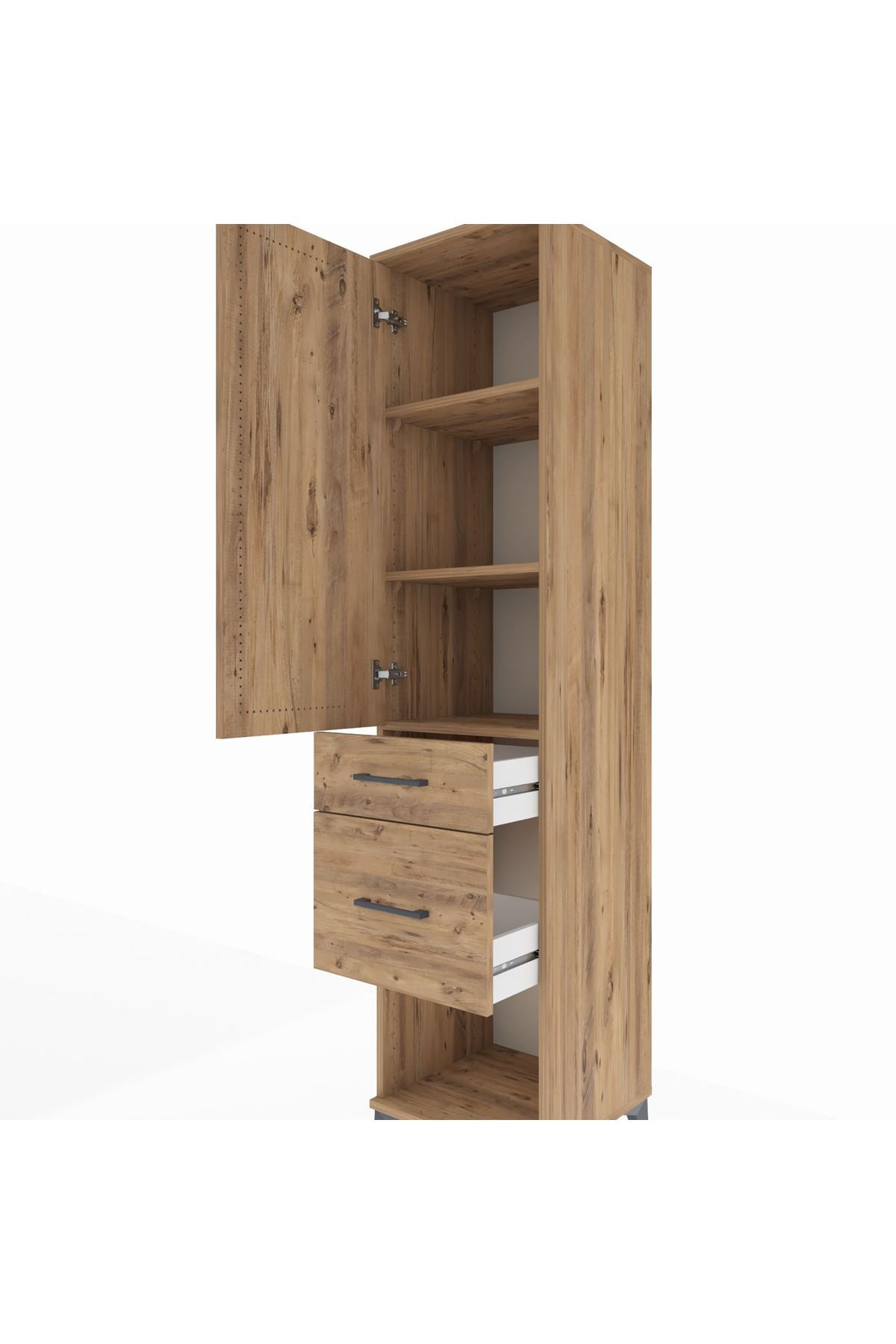 Hyperion Dolap 3 Raflı 2 Çekmeceli Tek Kapaklı 44x44x195 Çam-Çam