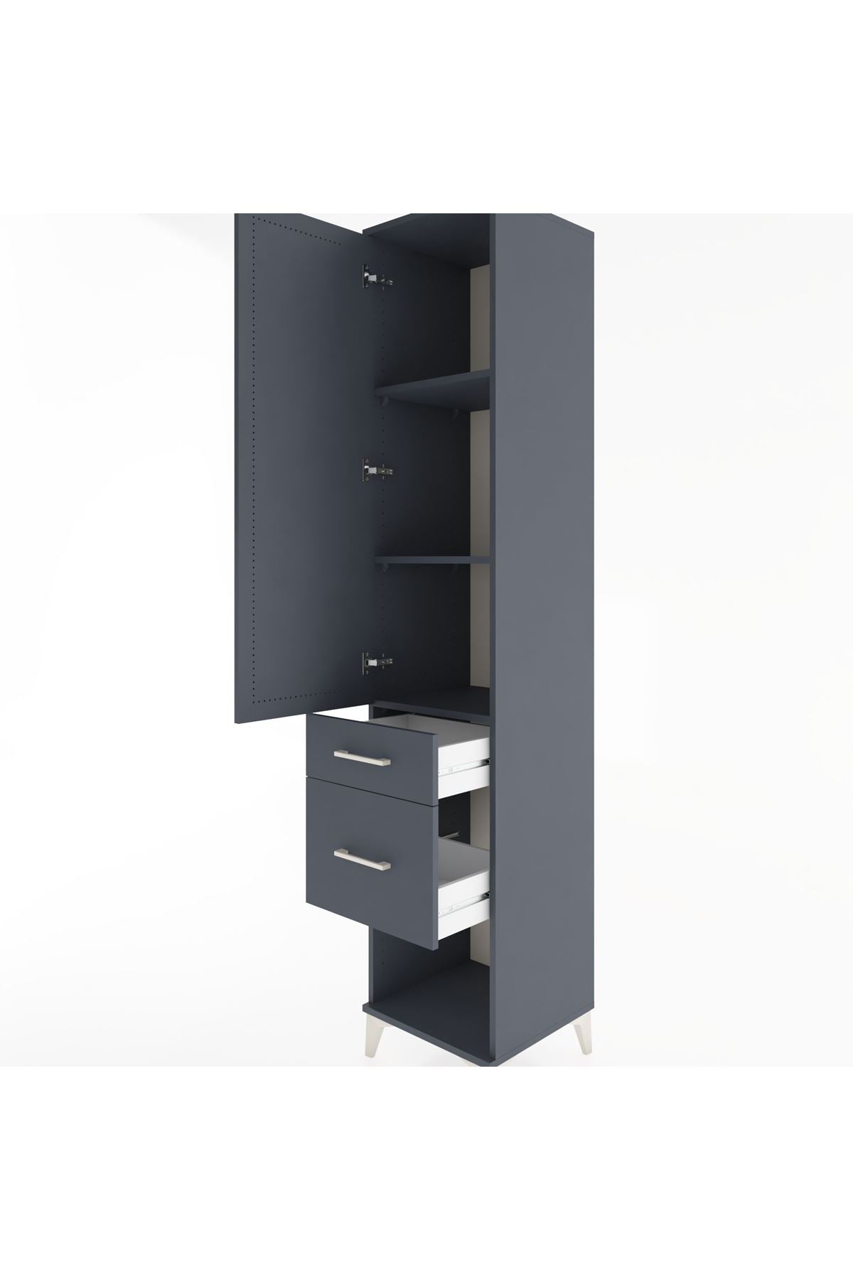 Hyperion Dolap 3 Raflı 2 Çekmeceli Tek Kapaklı 44x44x221 Antrasit-Antrasit