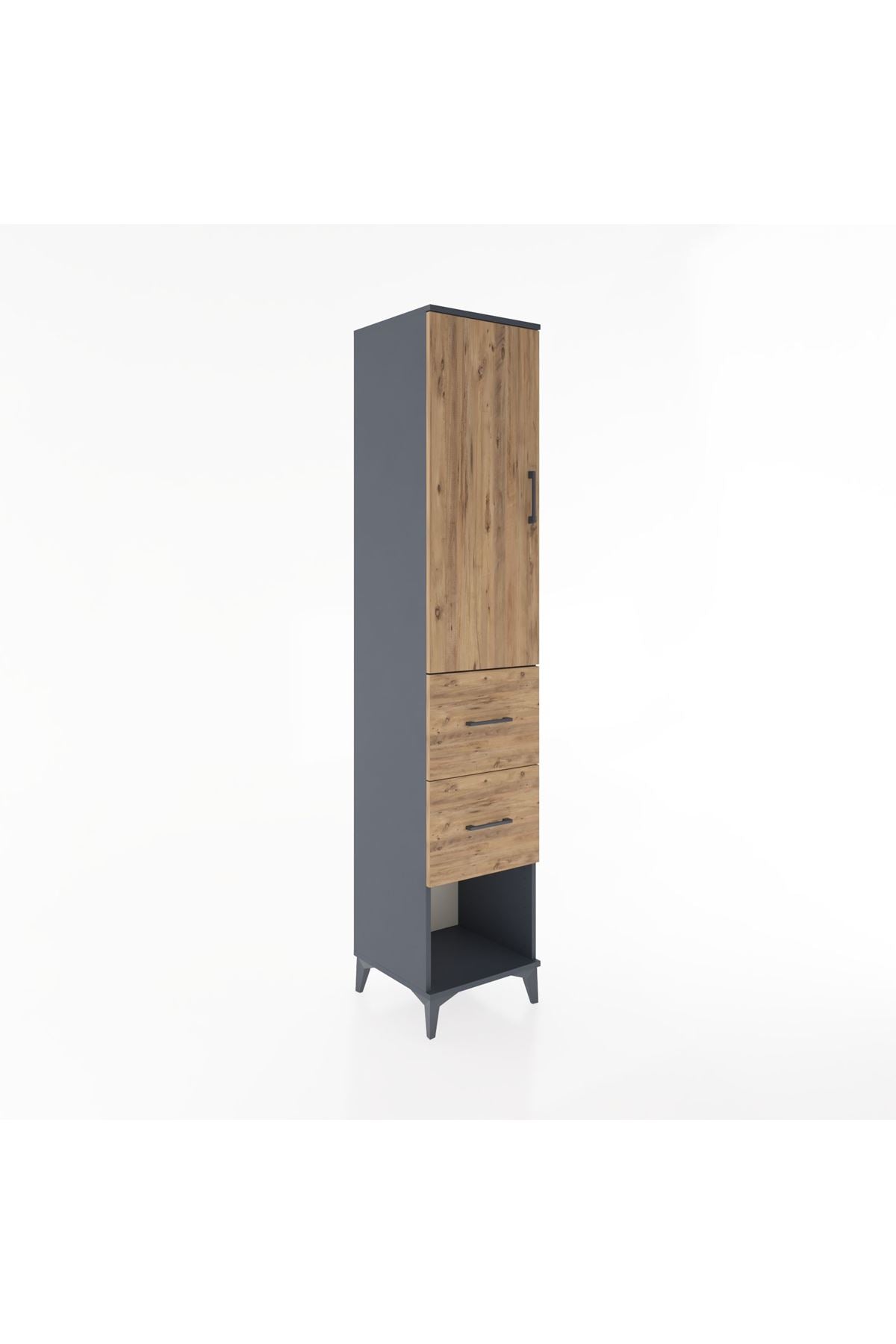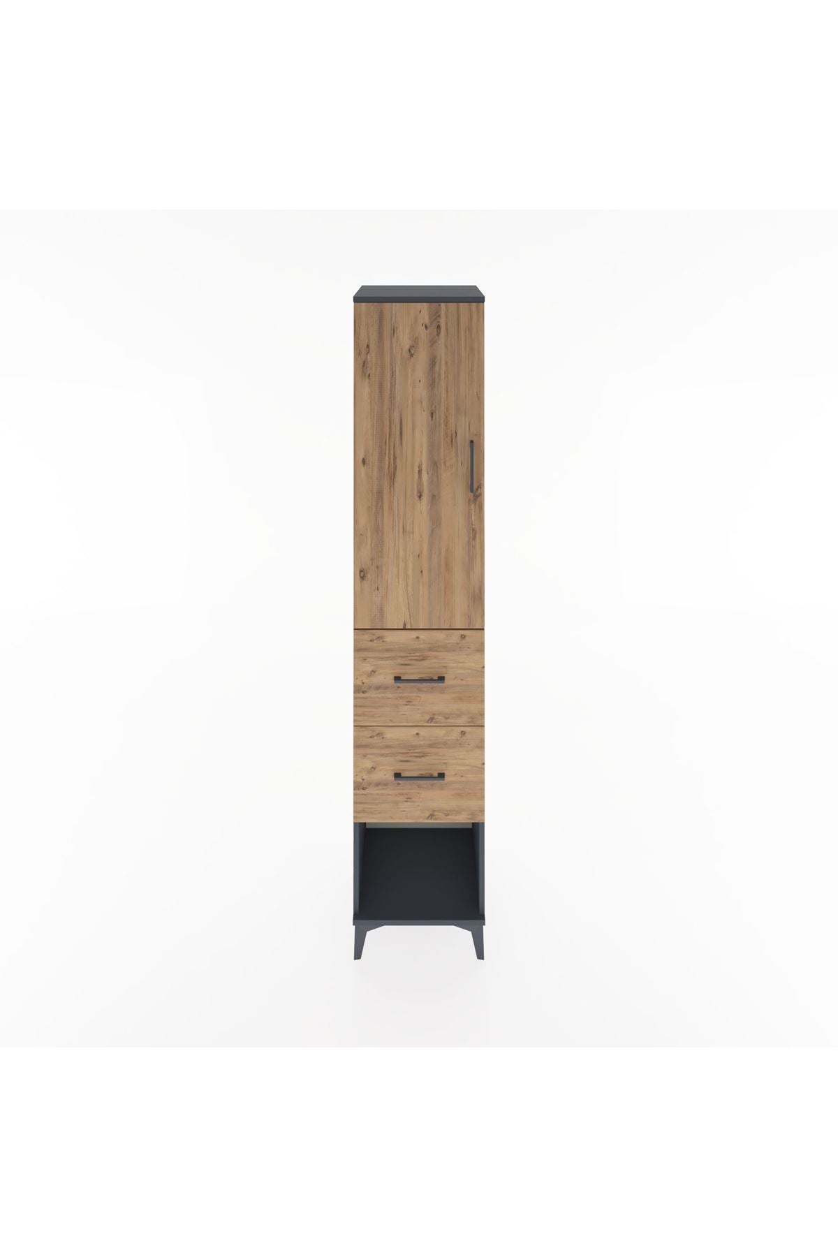 Hyperion Dolap 3 Raflı 2 Çekmeceli Tek Kapaklı 44x44x221 Antrasit-Çam
