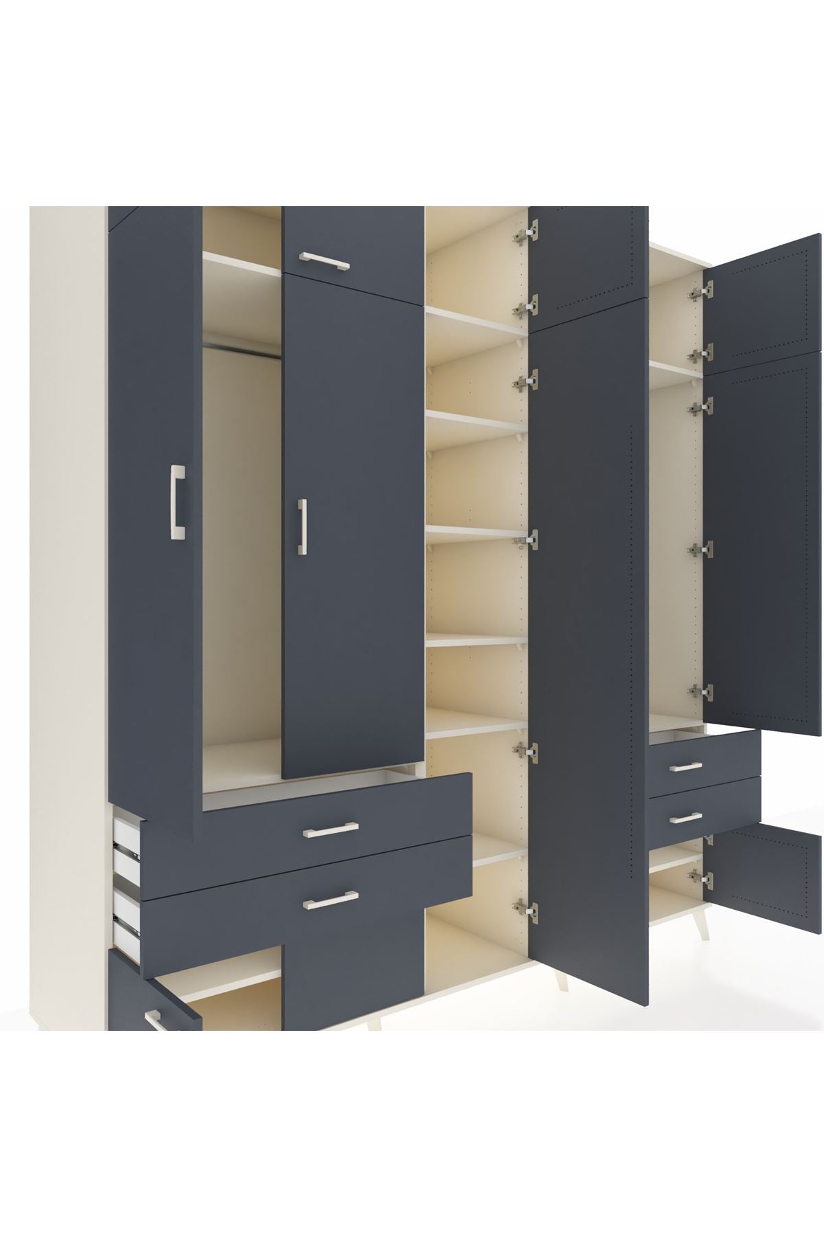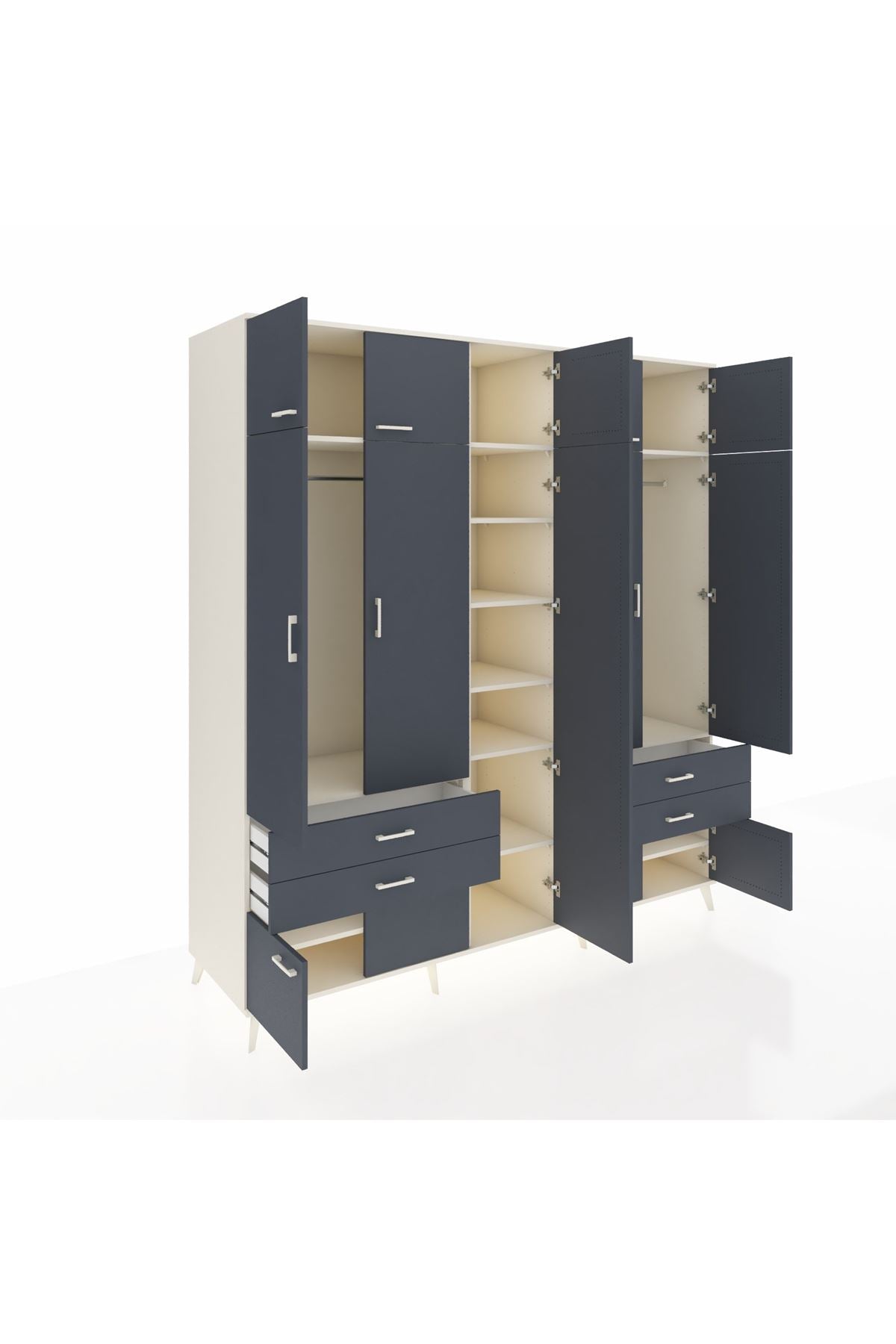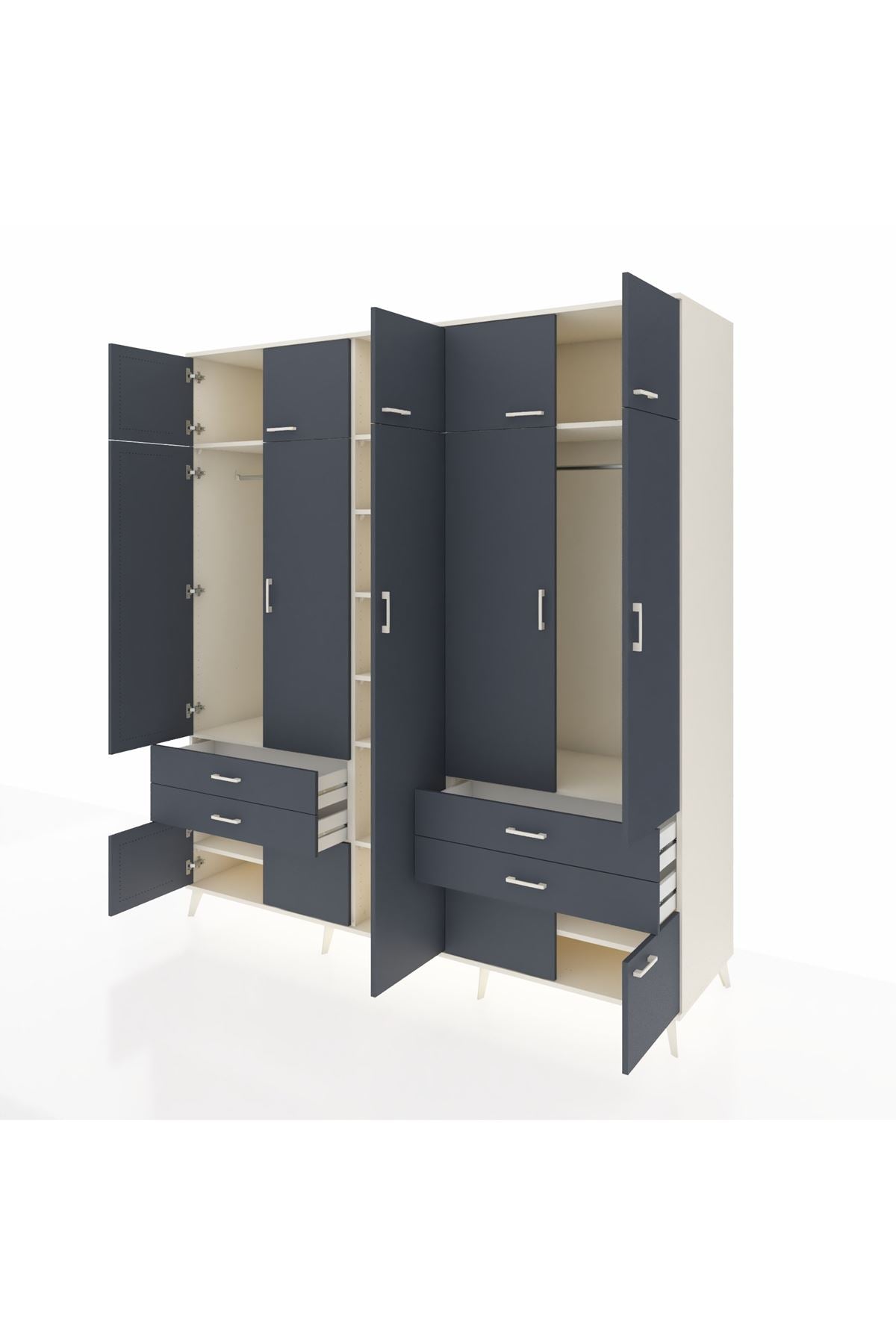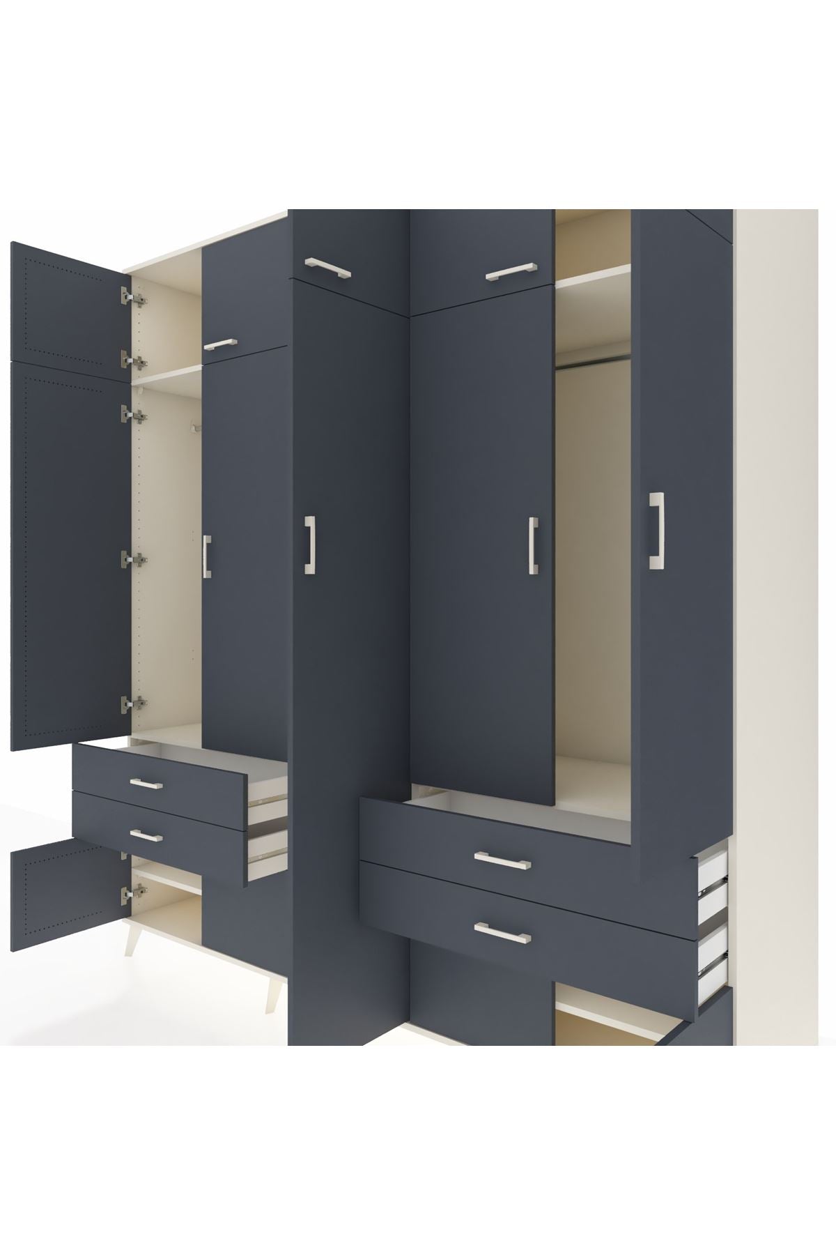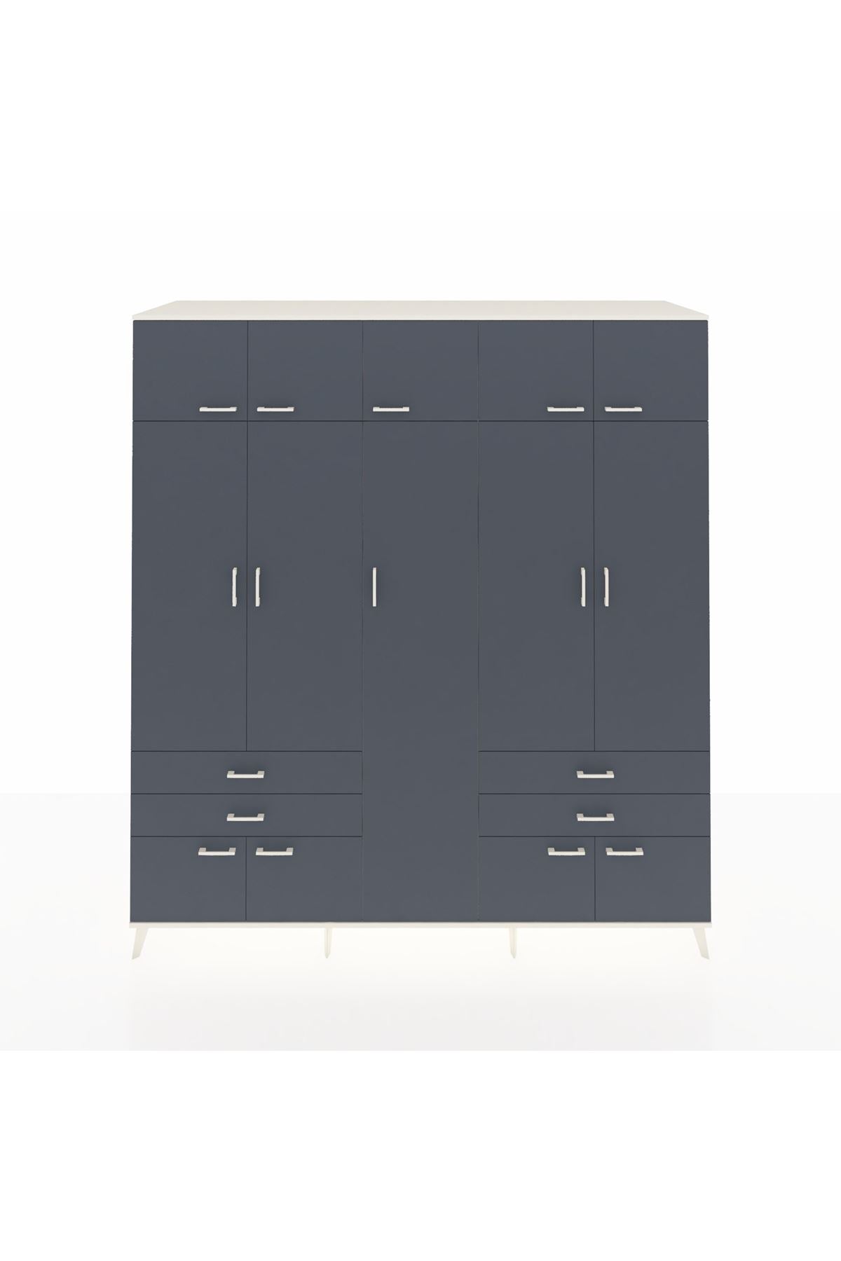 Kronos Dolap 12 Raflı 4 Çekmeceli 2 Askılı 220x59x243 Aytaşı-Antrasit/Antrasit