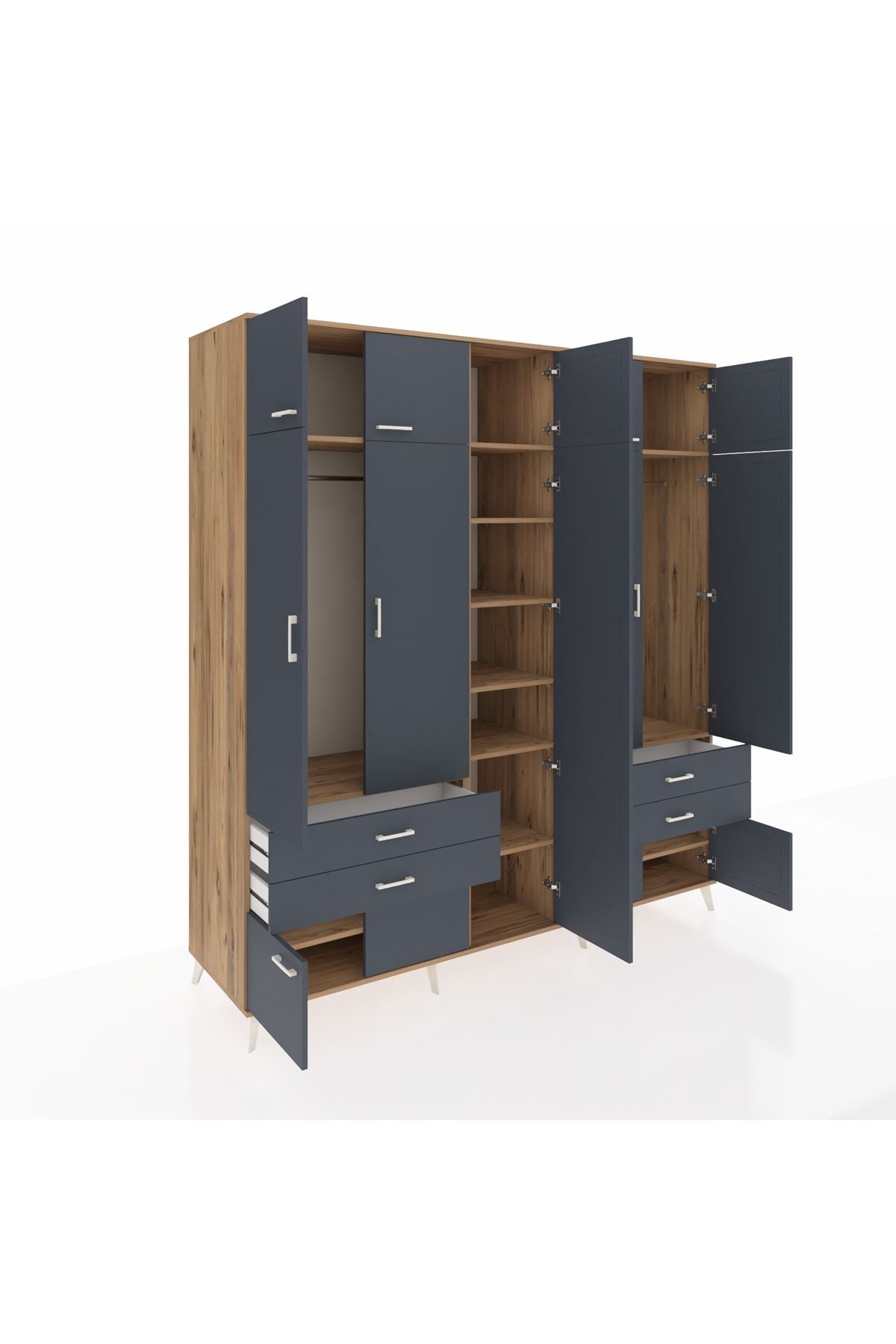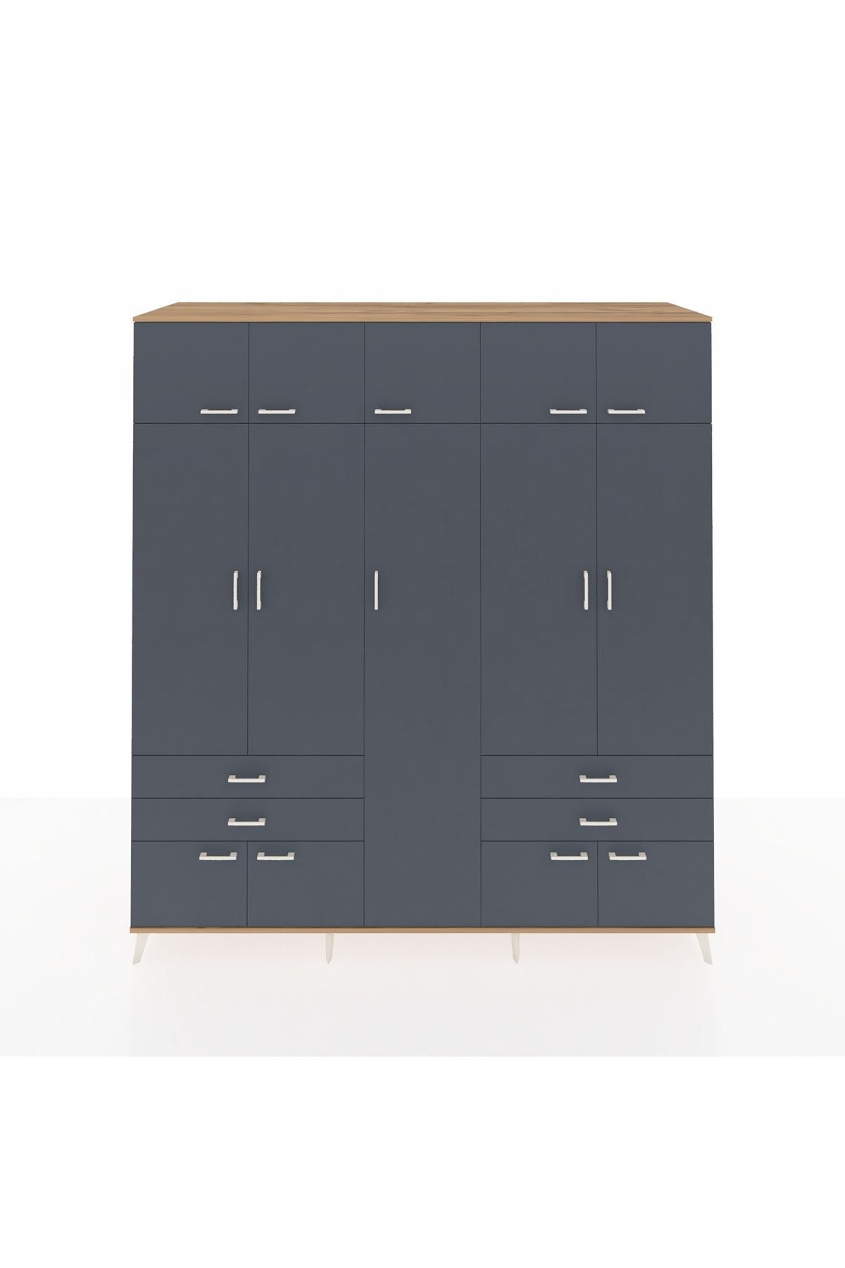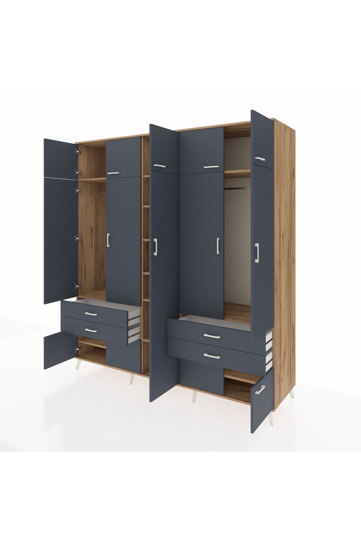 Kronos Dolap 12 Raflı 4 Çekmeceli 2 Askılı 220x59x243 Çam-Antrasit/Antrasit