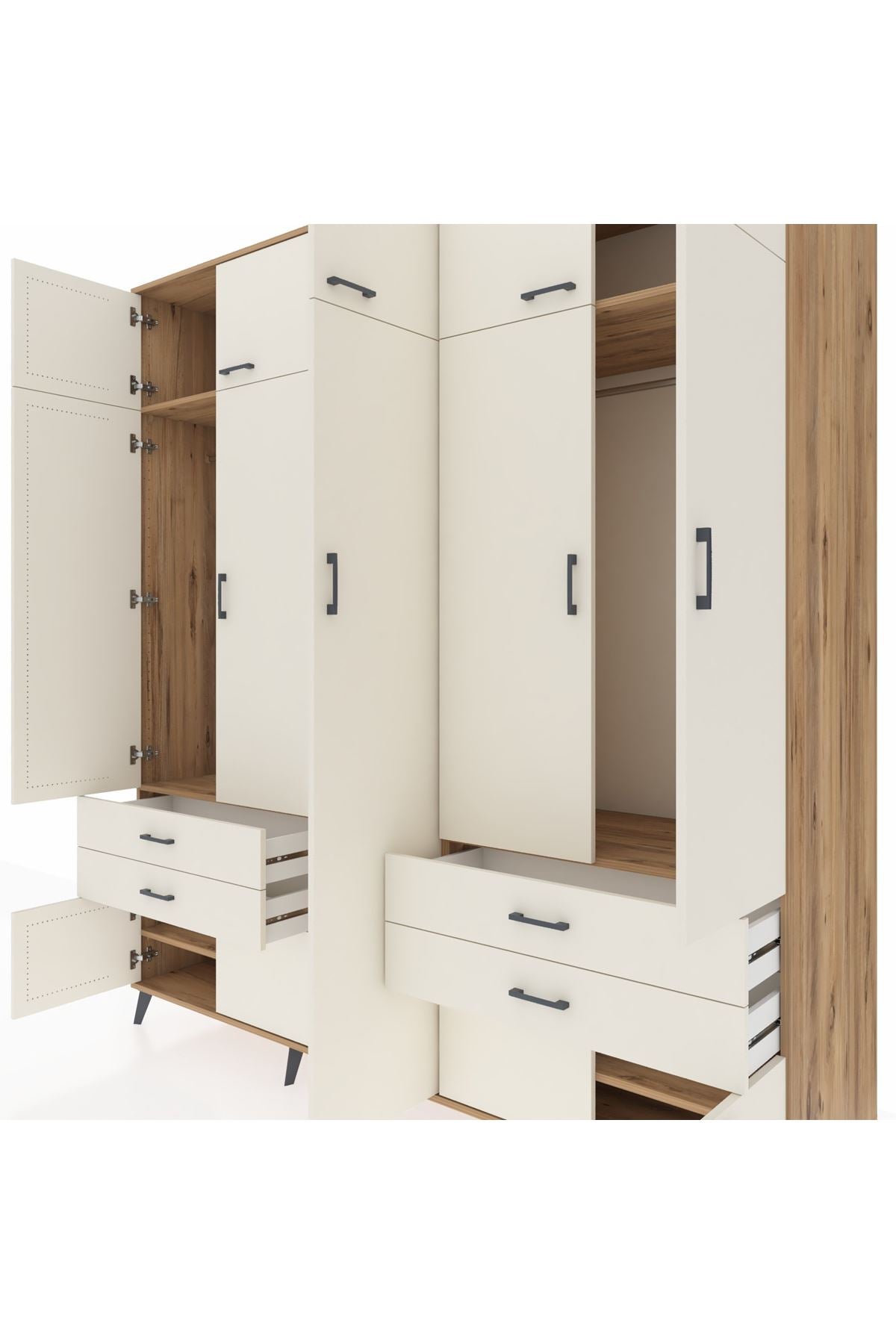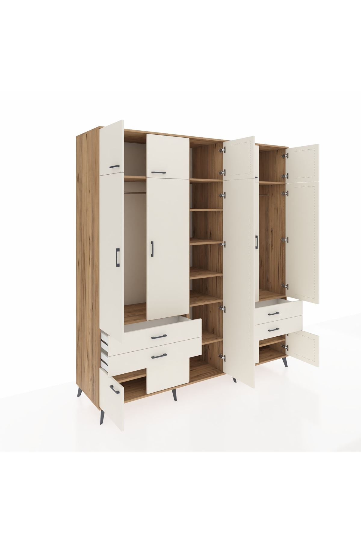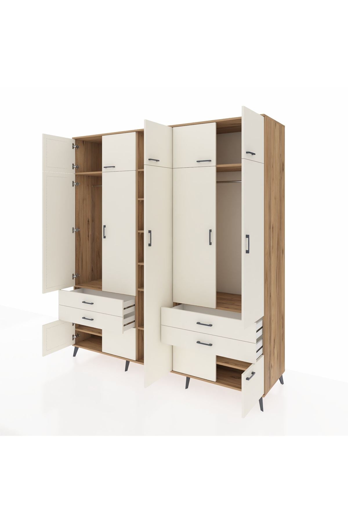 Kronos Dolap 12 Raflı 4 Çekmeceli 2 Askılı 220x59x243 Çam-Aytaşı/Aytaşı