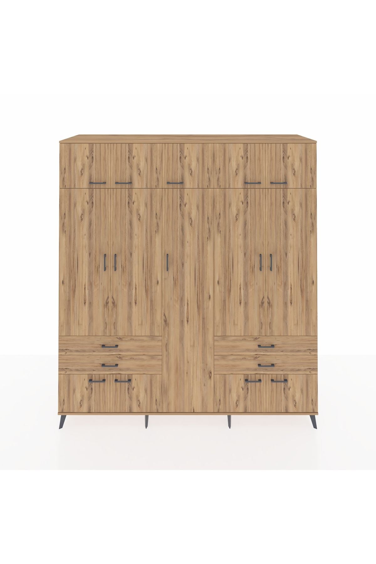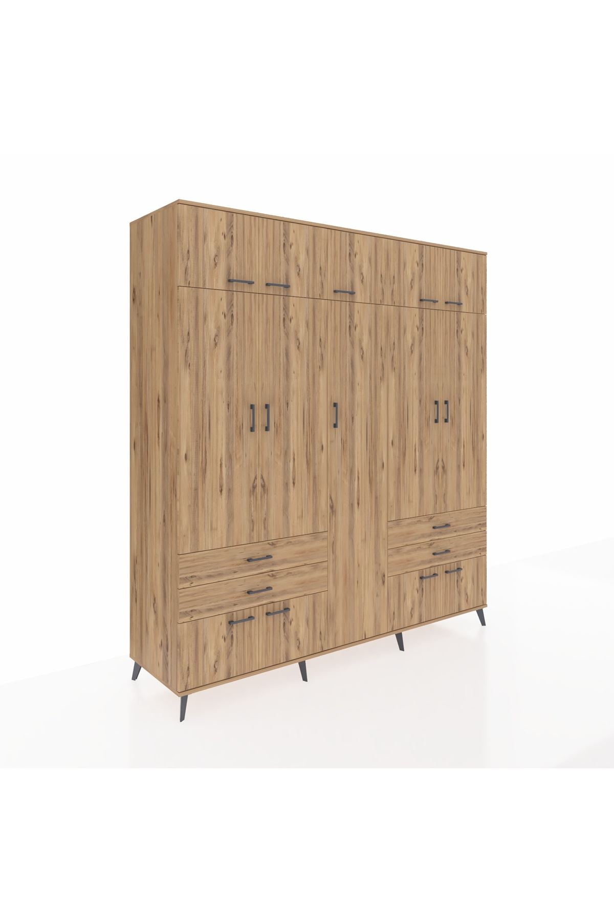 Kronos Dolap 12 Raflı 4 Çekmeceli 2 Askılı 220x59x243 Çam-Çam/Çam