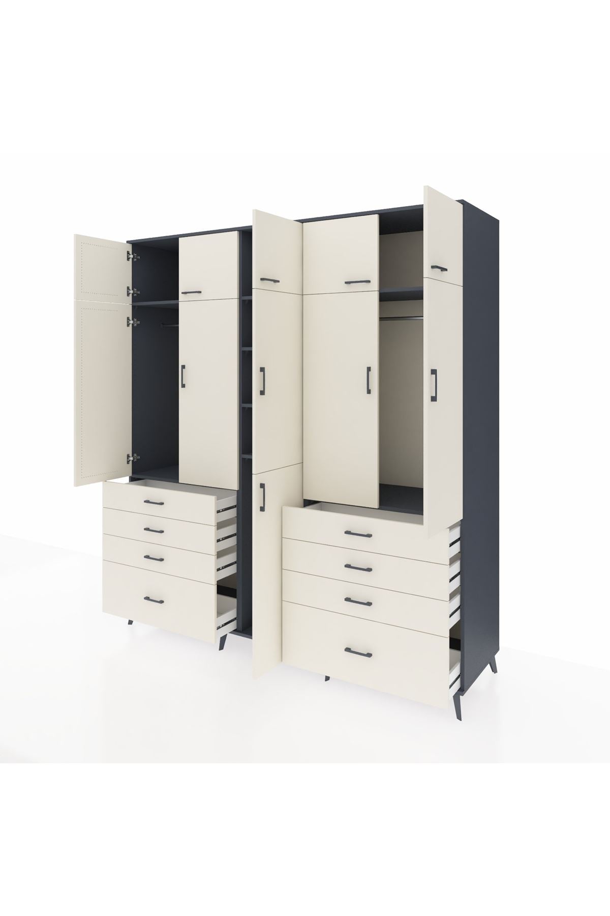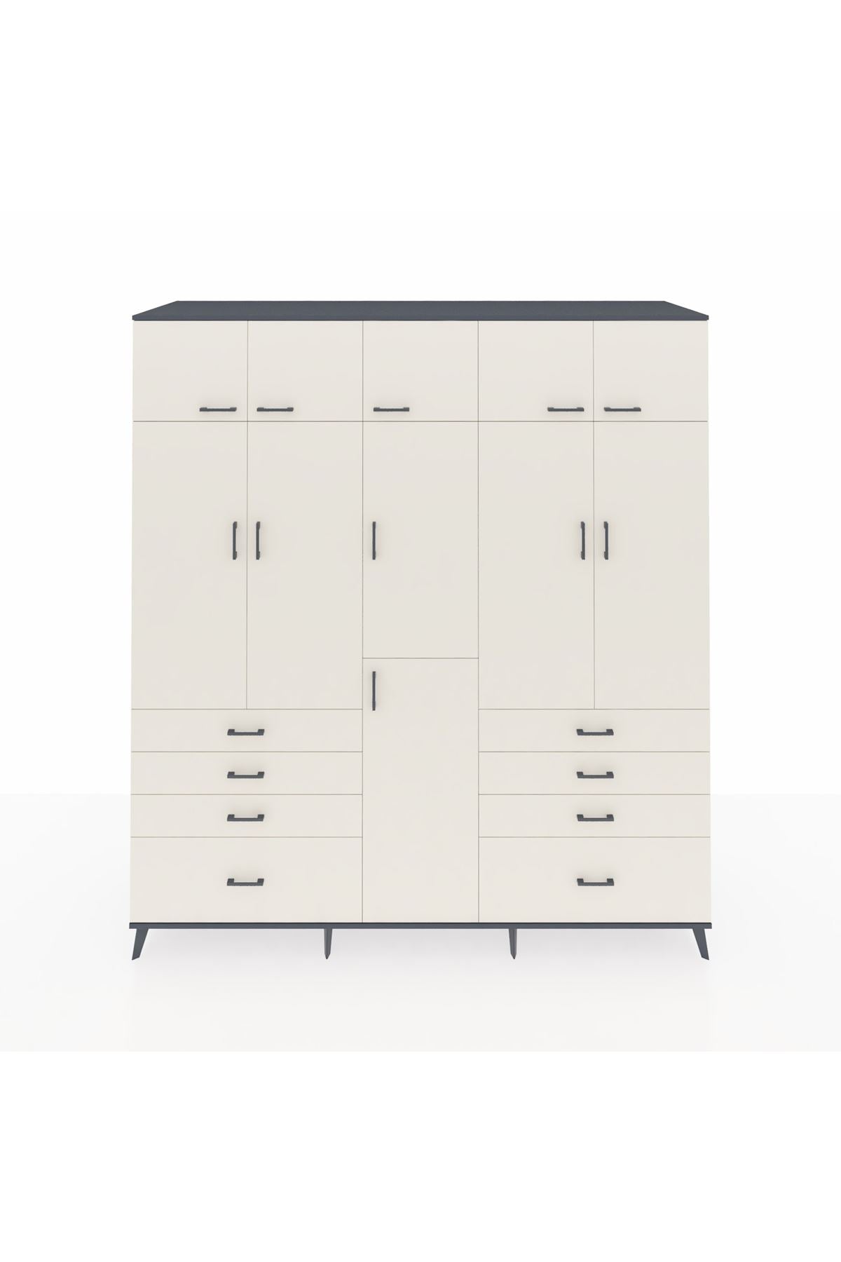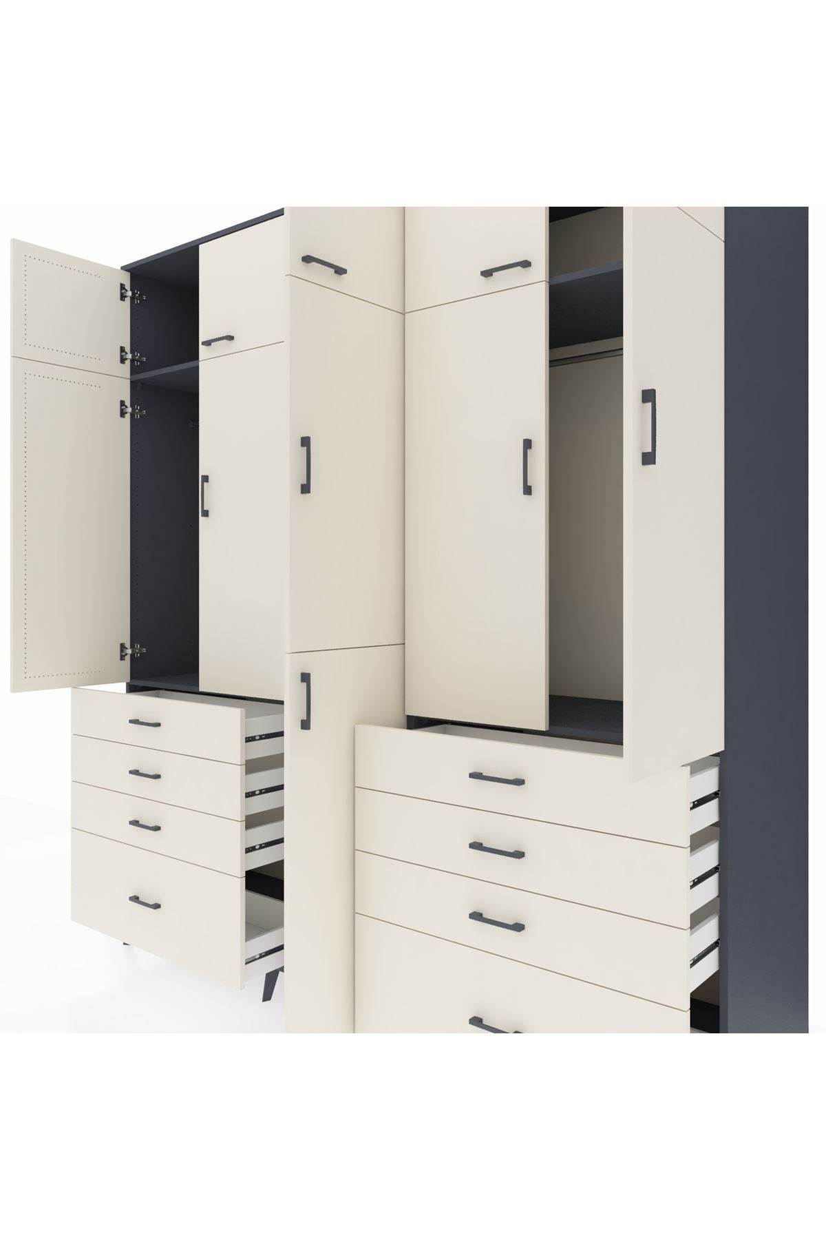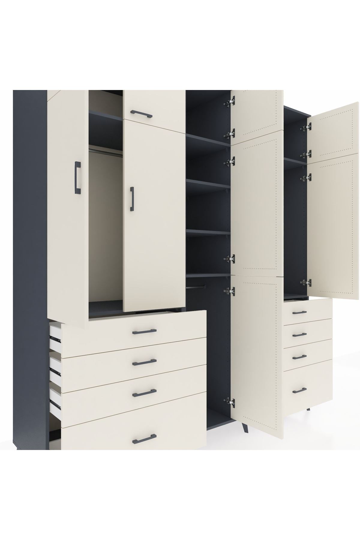 Kronos Dolap 8 Raflı 8 Çekmeceli 3 Askılı 220x59x243 Antrasit-Aytaşı/Aytaşı