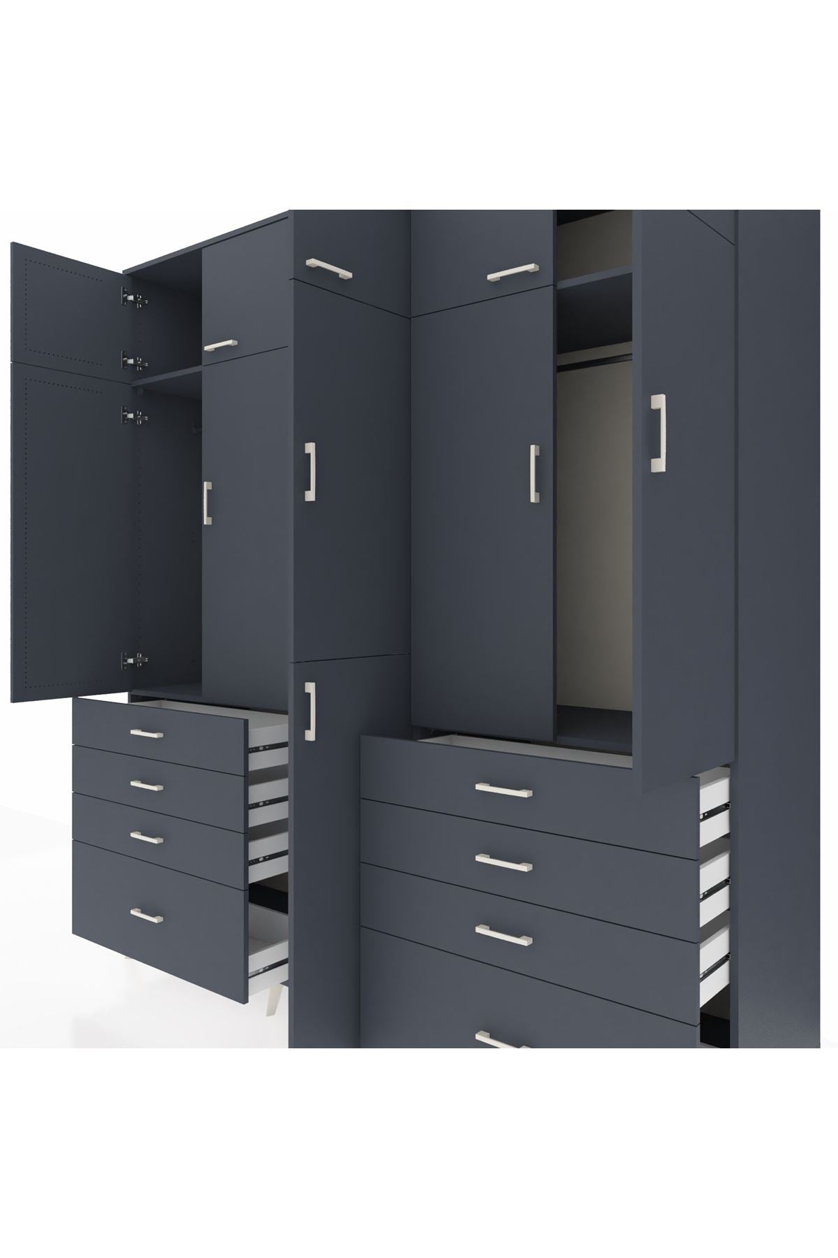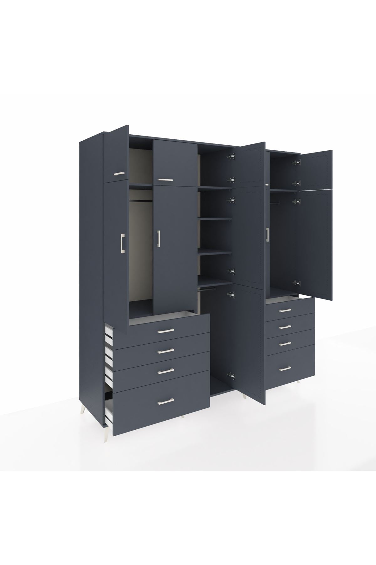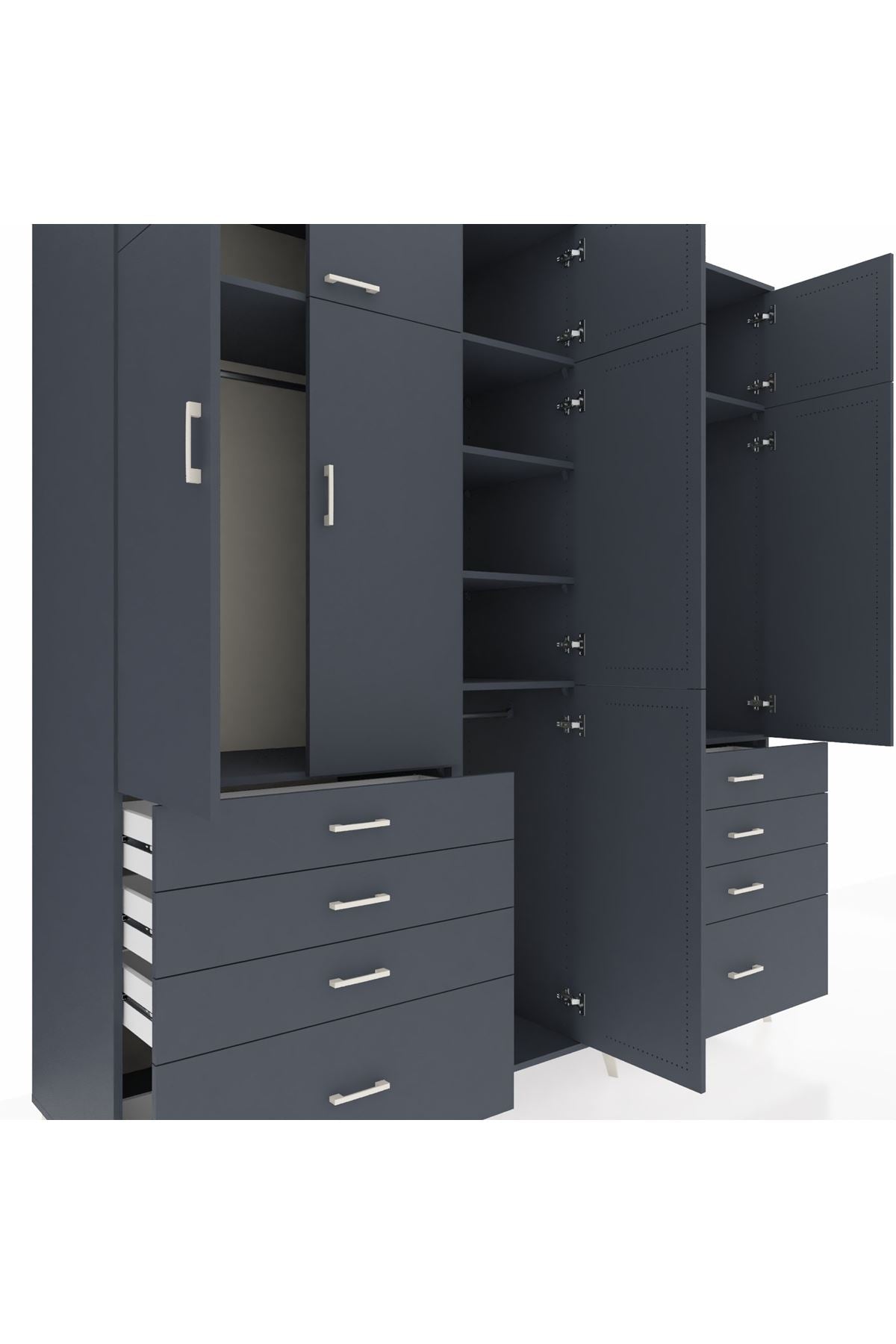 Kronos Dolap 8 Raflı 8 Çekmeceli 3 Askılı 220x59x243 Antrasit-Antrasit/Antrasit