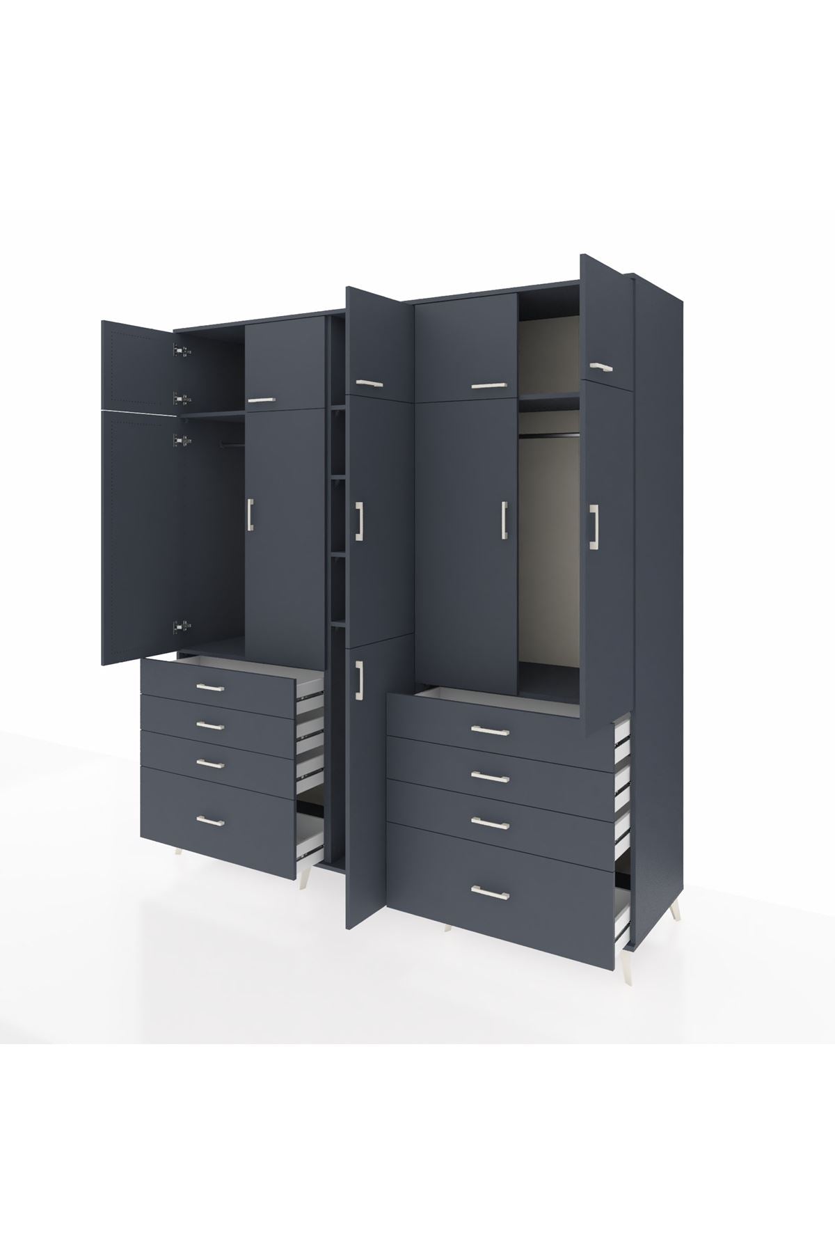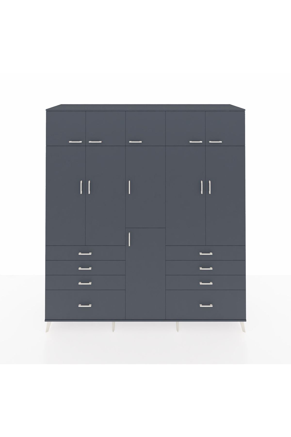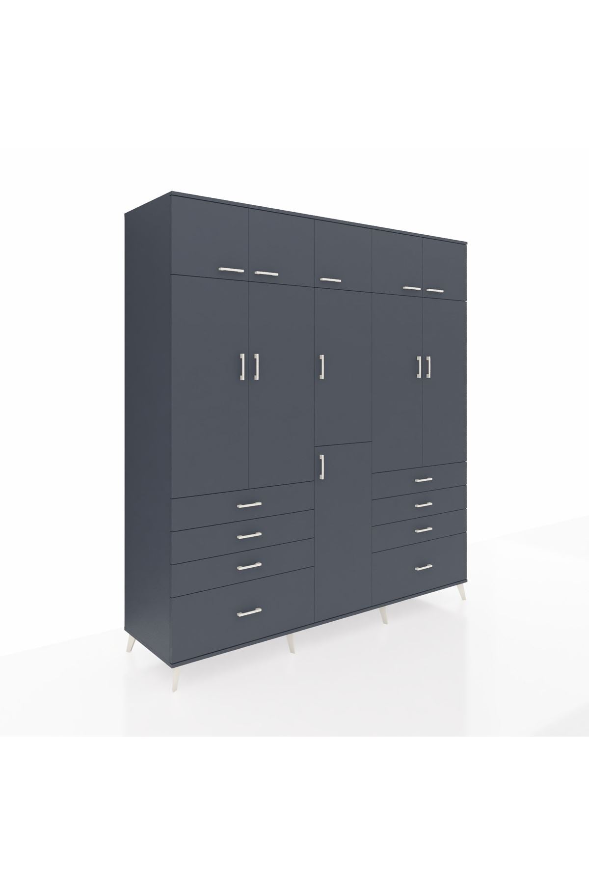 Kronos Dolap 8 Raflı 8 Çekmeceli 3 Askılı 220x59x243 Antrasit-Antrasit/Antrasit