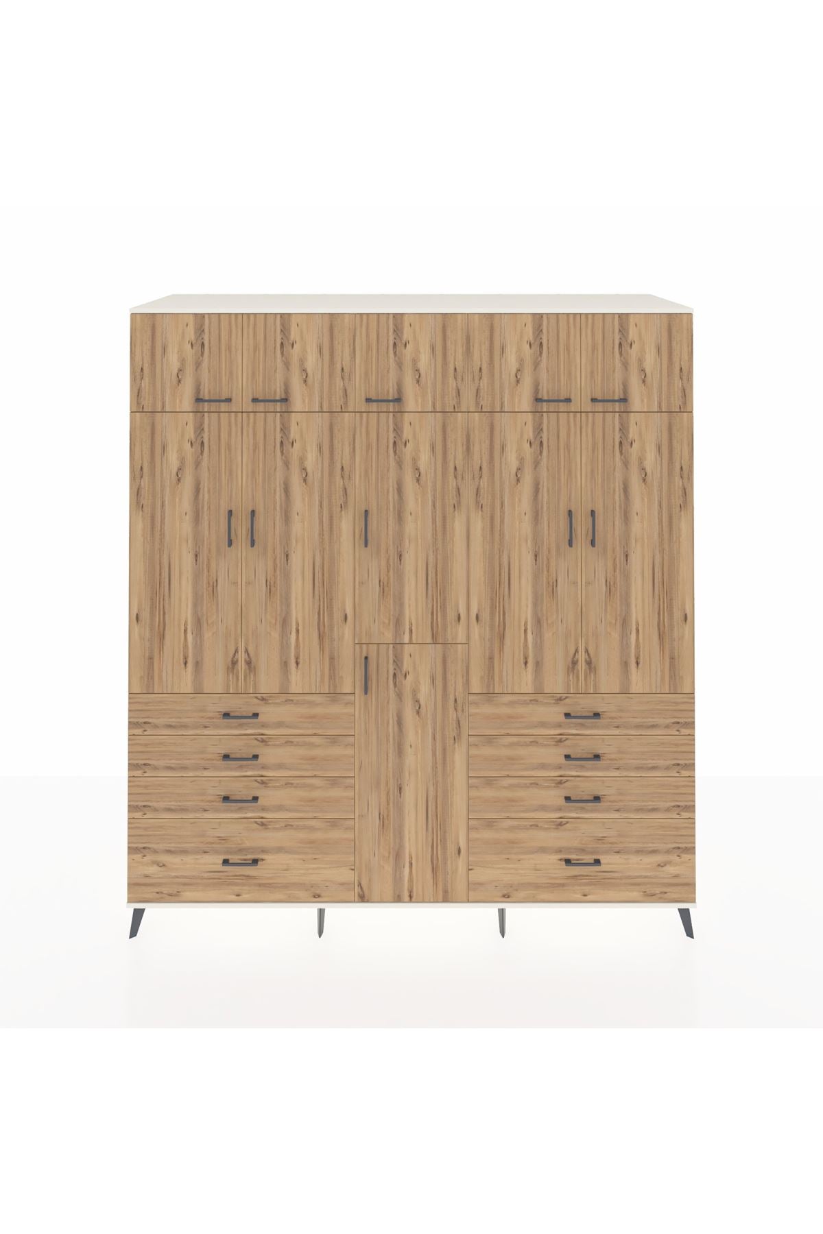 Kronos Dolap 8 Raflı 8 Çekmeceli 3 Askılı 220x59x243 Aytaşı-Çam/Çam