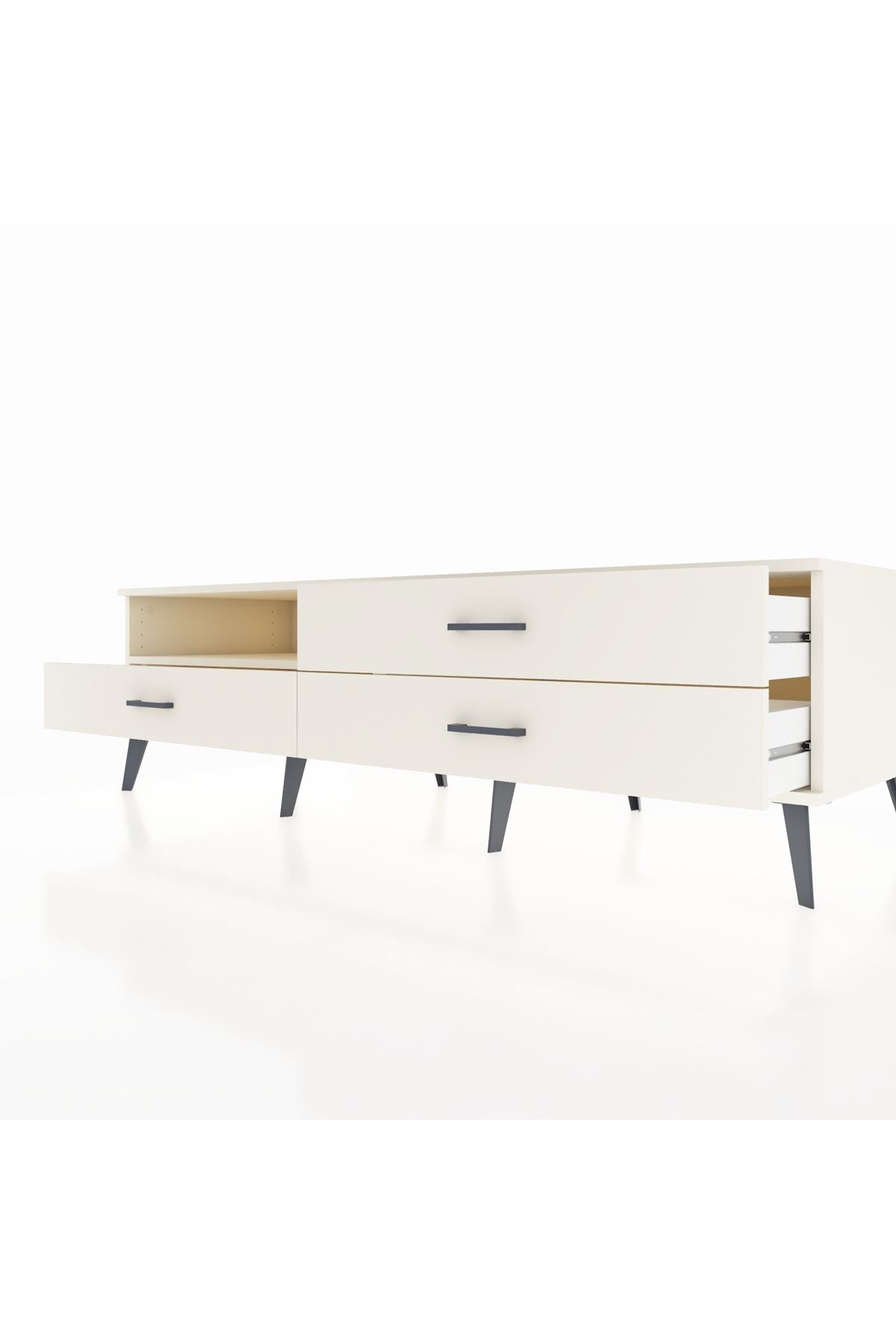 🚪 İnce zevk ile tasarlanmış olan TV ünitesi, Kastamonu Entegre 1. sınıf suntalamdan üretilmiştir. Metal ayakları ve kulpları sayesinde ekstra dayanıklılık ve modern bir görünüm kazandırır. 1.2 mm kenar bandı, sağlam bir tamamlayıcılık sunar.